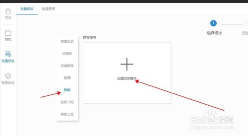 在批量页面,首先点击“群聊”命令,然后在点击“创建投放模版”命令!如图所示!