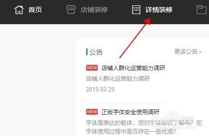在页面中,找到“详情装修”,并点击进入详情的装修页面!如图所示!