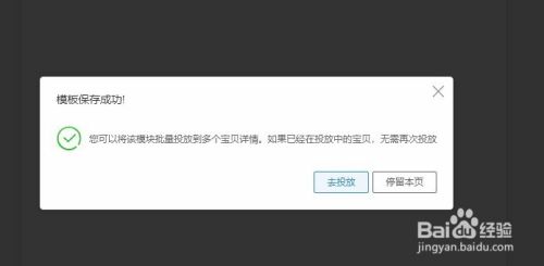 确定 后页面会提示,模块保存成功,并提供“去投放”命令!