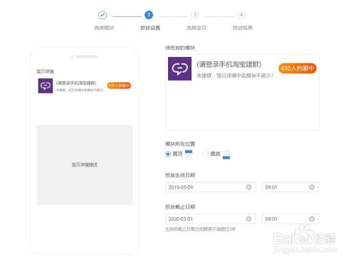 在投放设置中,选择模块投放的时间及位置,设置好后,点击下一步!