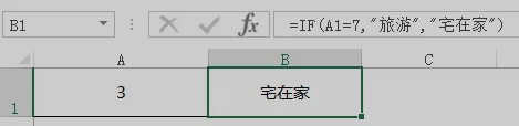 =IF(A1=7,"旅游","宅在家"),因为A1单元格是3,只放假3天,所以返回第二参数,宅在家。