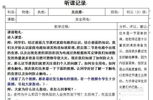 记授课过程。授课人授课过程环节清晰完备,我们的听课记录也要体现出来