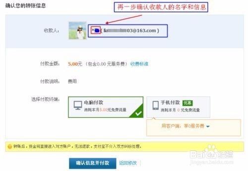 一般情况下当你在确认付款时,收款人账号的左边都会显示,该实名认证账号人的最后一个名(字)确定是该人后再点击付款确保万一。