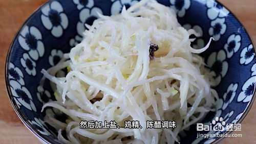 提前把芥菜丝冷藏一天,第二天把它夹在碗里然后加入盐、鸡精、陈醋调味,最后可以根据口味加上辣椒油,然后搅拌均匀做出来就非常好吃。