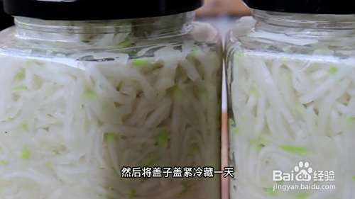 需要先将准备好的芥菜丝放在瓶子里,然后将盖子盖紧冷藏一天。