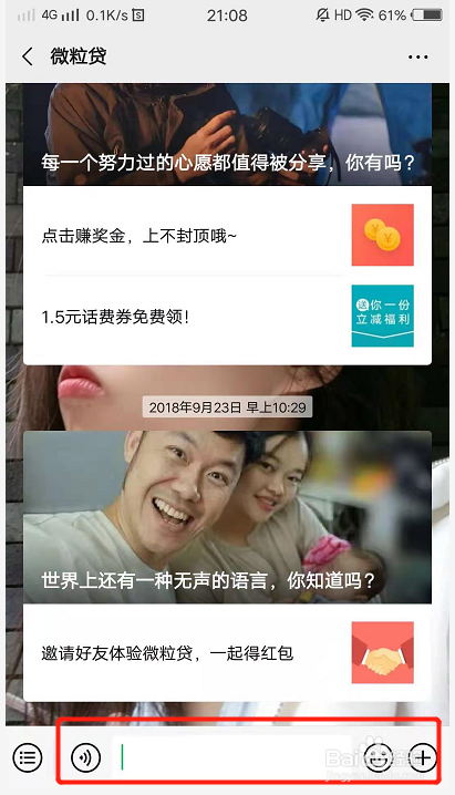 进入公众号后,在输入框里输入”关闭微粒贷“