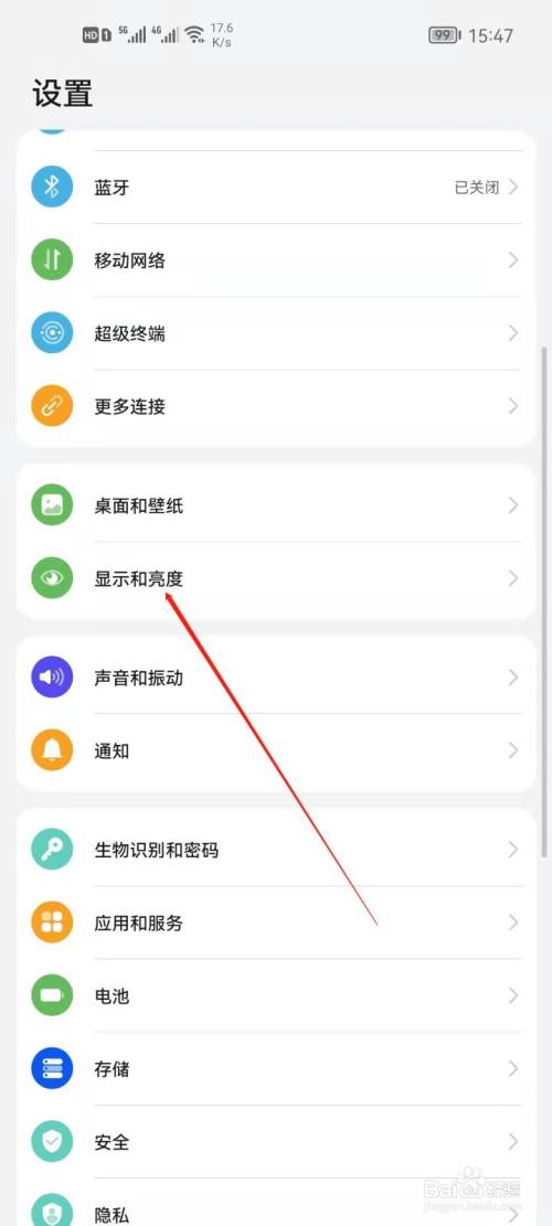 2、点击进入显示和亮度