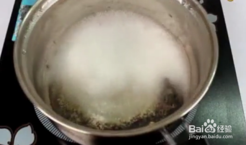 2、接下来给锅加热,如图所示把锅中的白醋煮开即可。