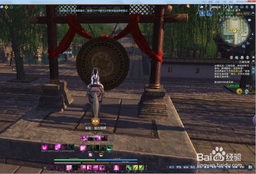 从日晷处往右后方走,有个大擂台,擂台入口处就是擂台铜锣,坐标(1854.1070)
