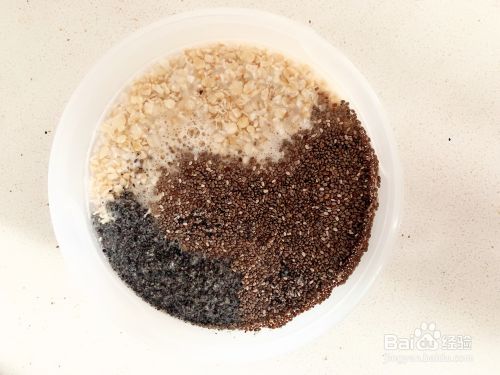 重点来了;请看清楚了。????放与燕麦片齐平的水(温水or凉水都可以,如果你想放热水也行,那样会令麦片软绵绵的);最后放进冰箱里过一晚上;没有一晚上也至少需要4小时哦……