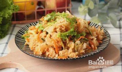 盆内放入银耳、香菜倒入生抽、醋、盐、味精拌匀。