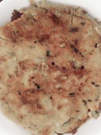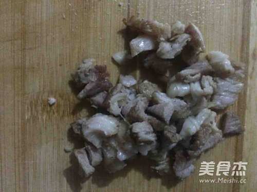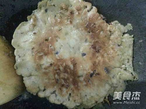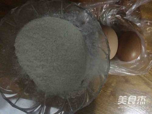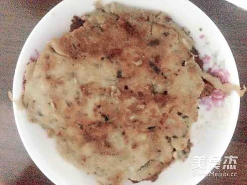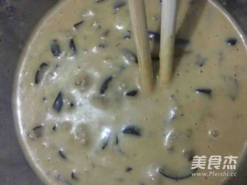 鸡蛋于面粉搅拌均匀,倒入鸡蛋,盐,葱花,熟肉末,将其搅拌均匀