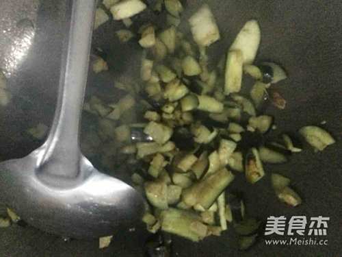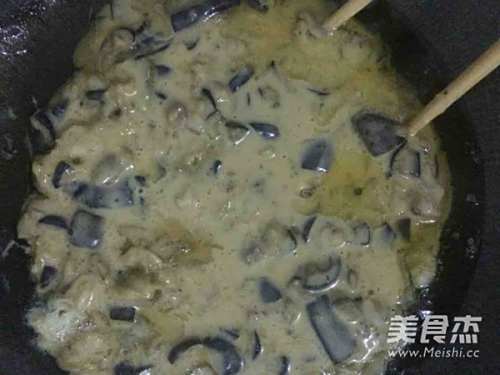 锅里倒入适量的油,放入已搅拌好的茄子面粉鸡蛋