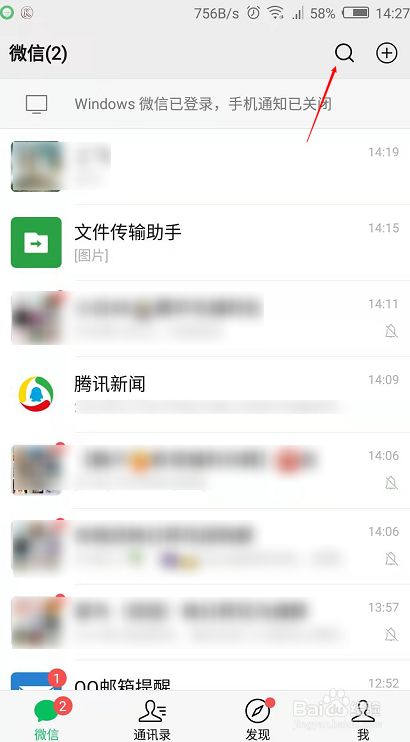 打开并登录微信,点击微信右上角搜索。