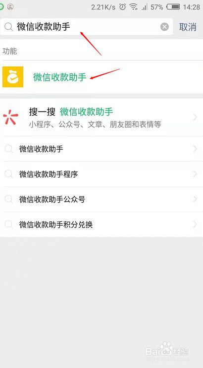 在微信搜索框中输入“微信收款助手”。