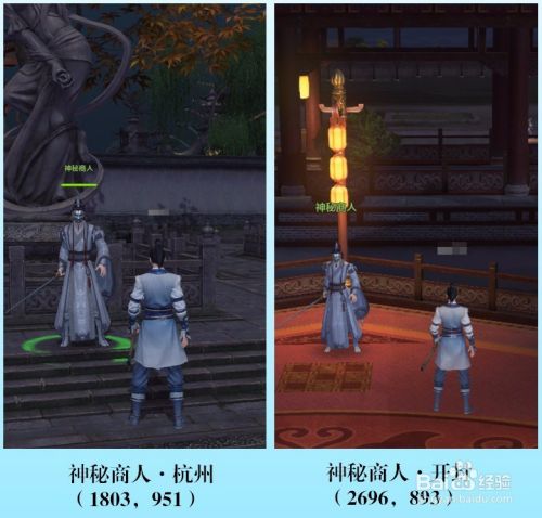 【天涯明月刀神秘商人】在开封(2696,893),杭州(1803,951)两处找到。