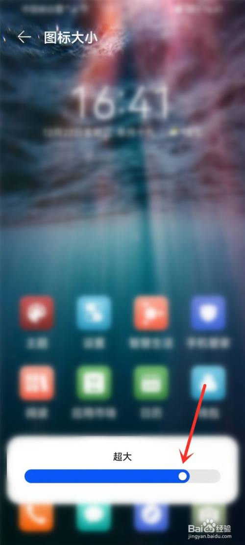 拖动底部圆形滑块,即可设置桌面图标大小。