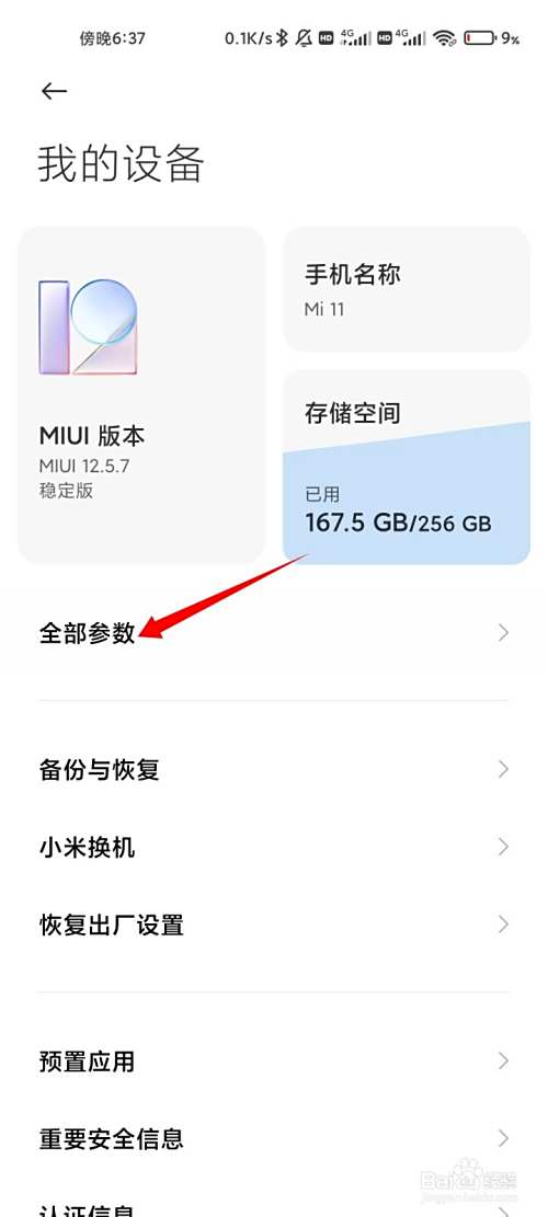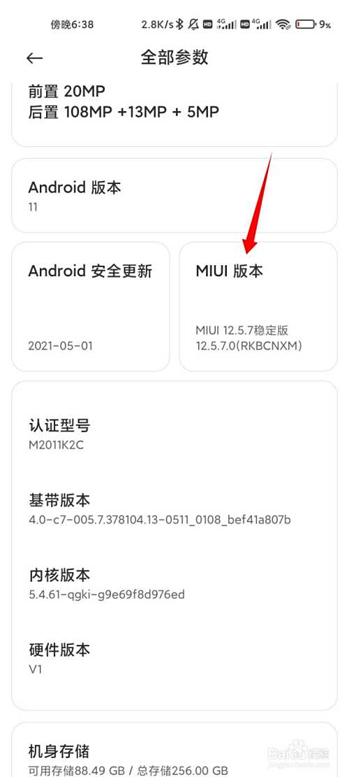 连续7次点击MIUI版本的选项,直到出现开启开发者选项模式为止。