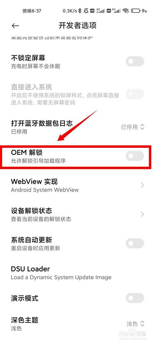 把OEM解锁选项后面的开关打开,即可安装非官方系统应用。