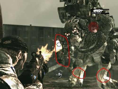 K它的方法:先对它手上的枪猛扫,把他们扫坏(冒黑烟)2个都要打掉,这时候就可以攻击它那白白的但却一点也不嫩嫩的大腿(还会冒绿血哦) 把它打蹲下来,这时候头顶上那小家伙就痿了,对它猛K吧,反复几次就KO了!