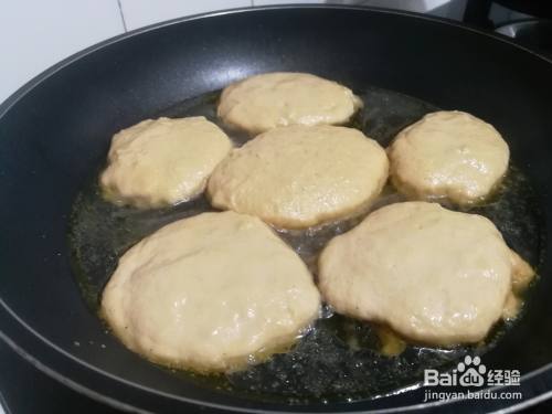 取适量面糊,做成贴饼胚放入锅中,倒入80克左右的水,盖上盖中火煎制。