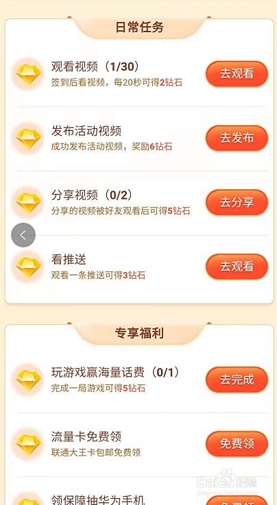 完成对应的日常任务可以获得钻石;