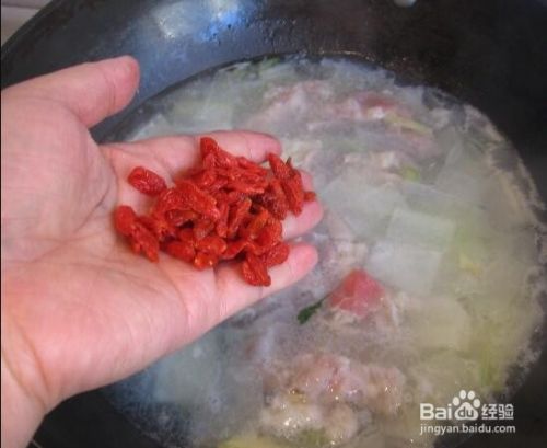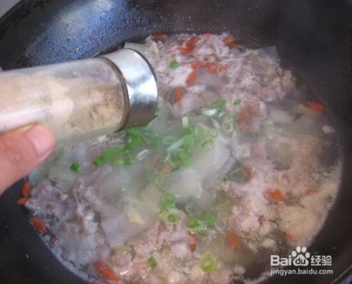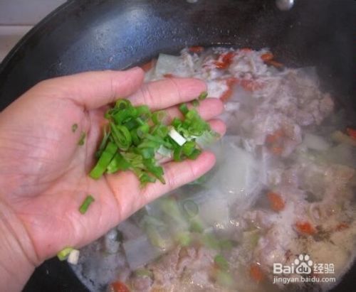 水再度开后,羊肉变白时关小火放入枸杞,放入葱花