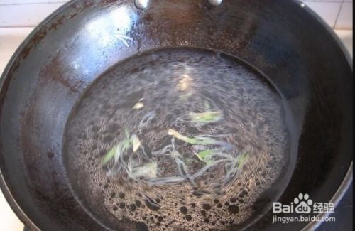 起锅烧油,放入切好的葱丝姜丝