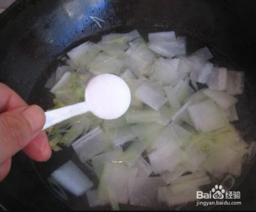 水煮沸后,放入切好的冬瓜片