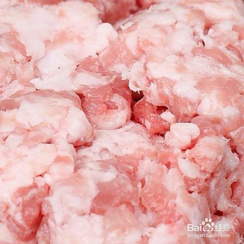 1.猪肉馅一斤备好,肥瘦依个人喜好。
