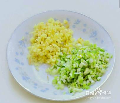 3.接下来把调肉腥的葱沬与姜沫切好备用