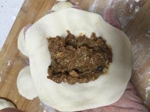松弛面团的时候把肉馅准备好,我们北方一般都是放油,盐,酱油,豆豉,葱,姜等来调味儿。