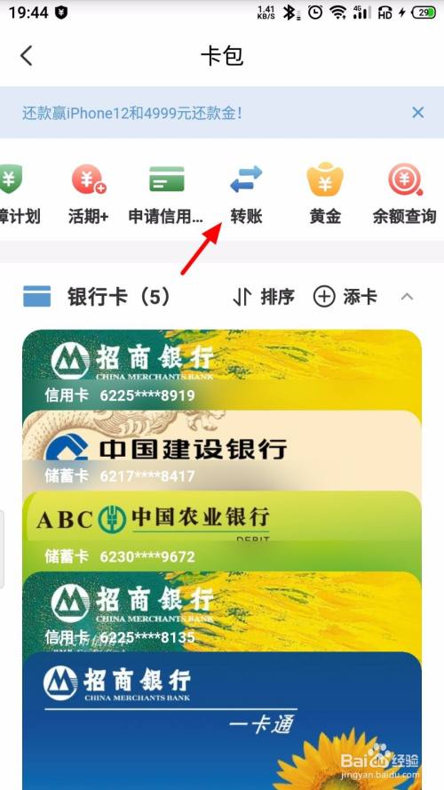 【1】打开 云闪付,点击 卡管理>转账>收款;