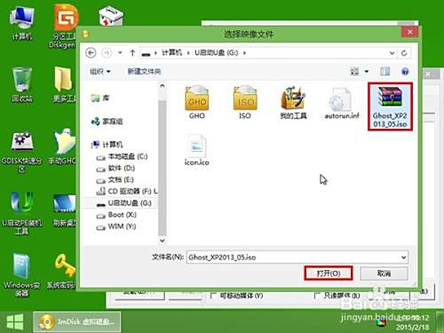 在弹出的窗口中找到需要进行装载的iso文件,单击选择,再点击“打开”按钮,如下图所示: