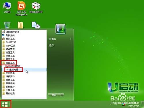 依次点击桌面左下角windows图标——光盘工具——虚拟光驱,如下图所示: