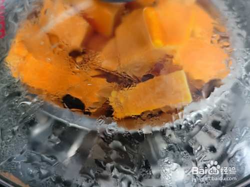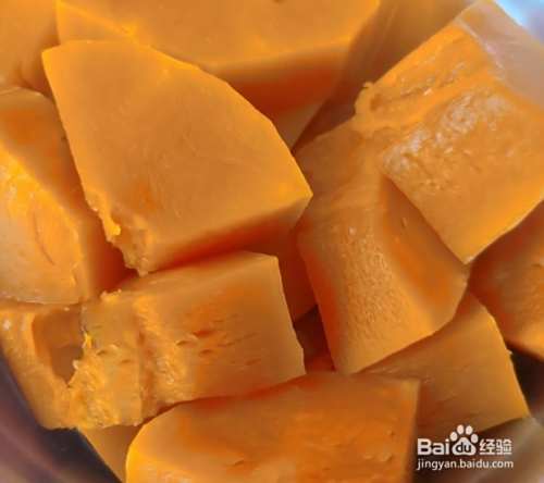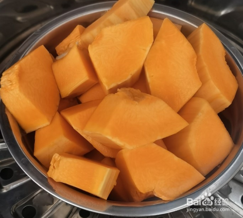 南瓜洗净切块,大小适中,装入浅底的盘中,平铺开