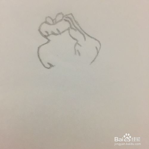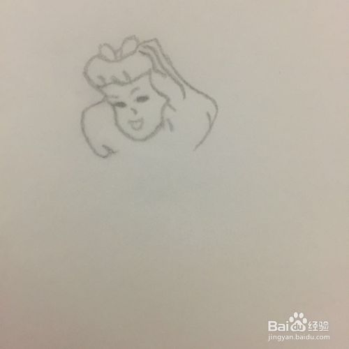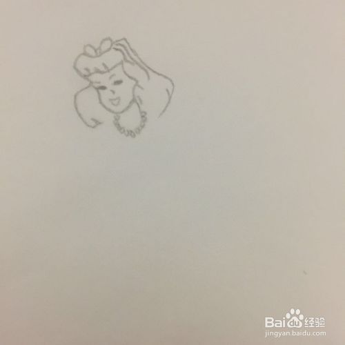 首先画出新娘的头发,如下图所示。注意画这部分的时候不要画得太大,因为它的大小直接决定了画出来的新娘的大小。