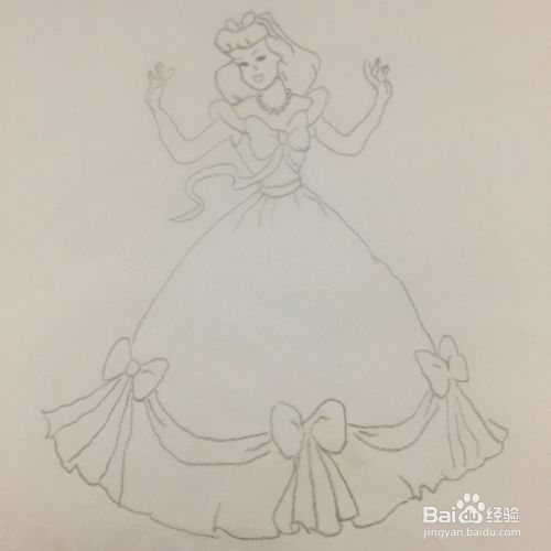 最后画出新娘下半身的裙子就可以了。一幅简笔画新娘就换好了。