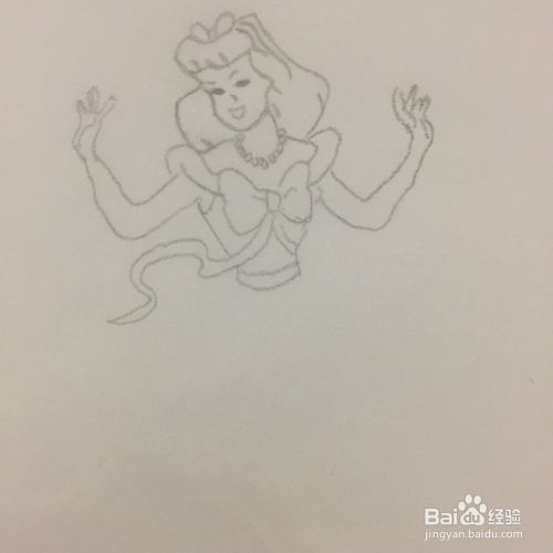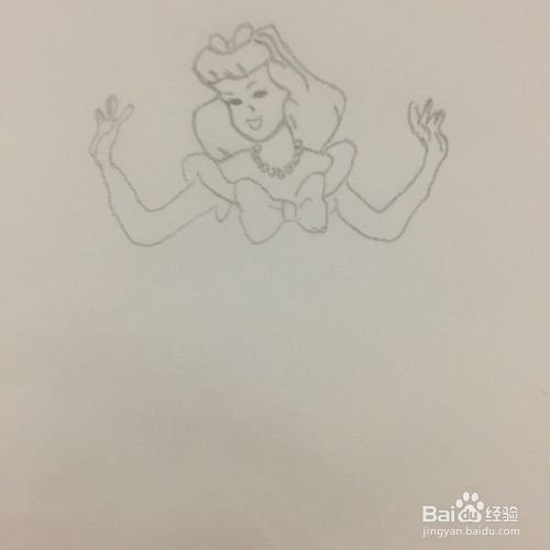 接着画出新娘的腰部,如下图所示。我们在画这部分的时候画的苗条一点,会比较好。