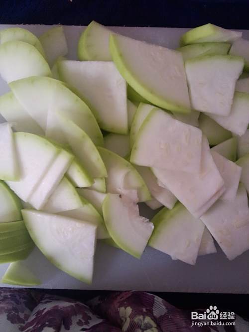 把葫芦瓜皮削干净,去头尾洗净,取适量的葫芦瓜切片。