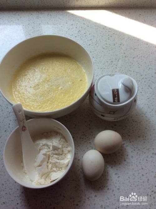 加二个土鸡蛋,适量面粉,依口味加入白糖;