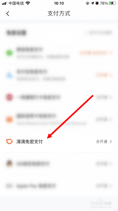 然后在【支付方式】页面里点击【滴滴免密支付】。