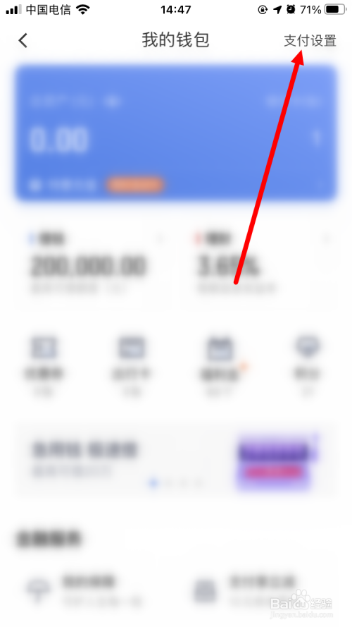 进入【钱包】页面后,点击右上角的【支付设置】。