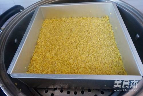 5最后铺上黄黏米上蒸锅,大火烧开水转中火蒸一小时。