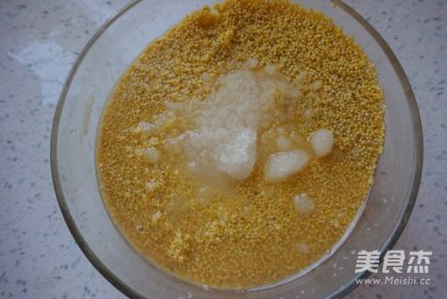 3喜欢甜的事先在泡好的米里和些白糖进去。