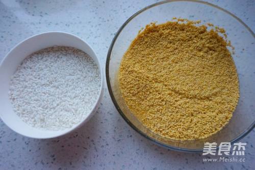 1糯米和黄黏米投洗干净,用水泡至少六小时以上,如条件允许的话泡久一点儿更好,久点米才黏。因为蒸的时候不加水所以要充分把米泡开。