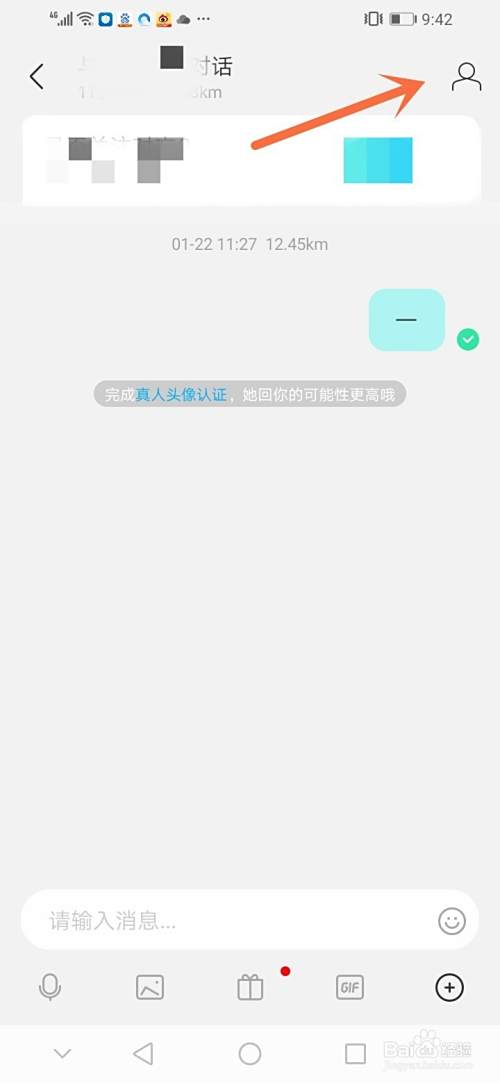 在和好友的聊天界面位置,我们选择右上角的图标,样子是一个人的形象。