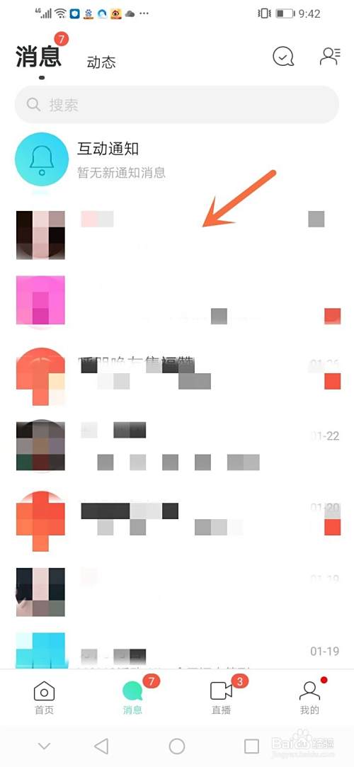 在消息界面,我们在对话的好友列表里随便选一个人点击进去。