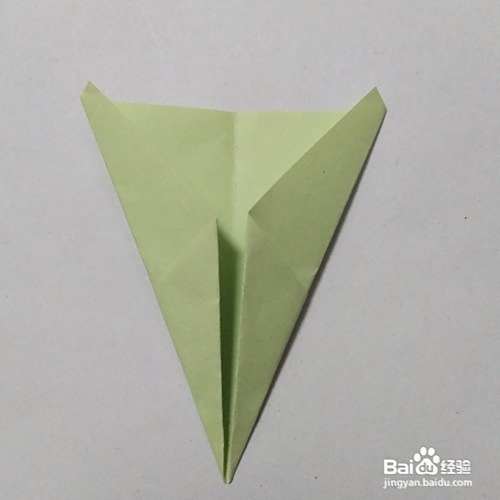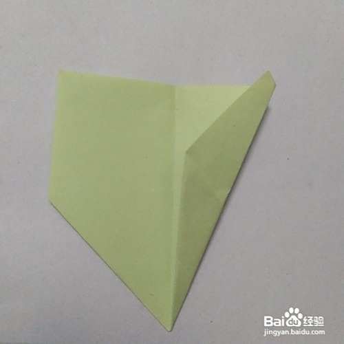 将对折好的彩色纸打开,右半边向里面折出一个小三角形状