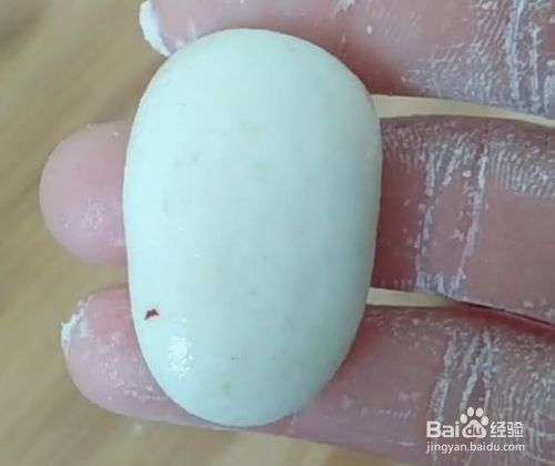 把糯米面分别揉成跟大枣一样的椭圆形。